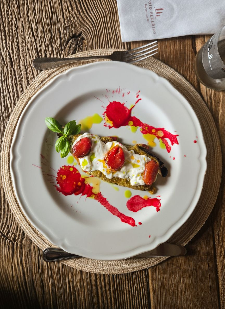 Stuffed smoked eggplant with Burrata Cheese and Semi-dried tomatoes